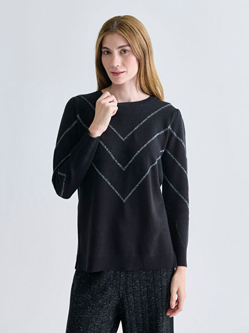 Bisiklet Yaka ?izgili Kad?n Triko Kazak