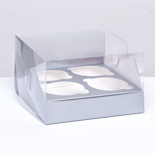 • Цена за 2 шт. Коробка для 4 капкейков 16×16×10 см, серебро