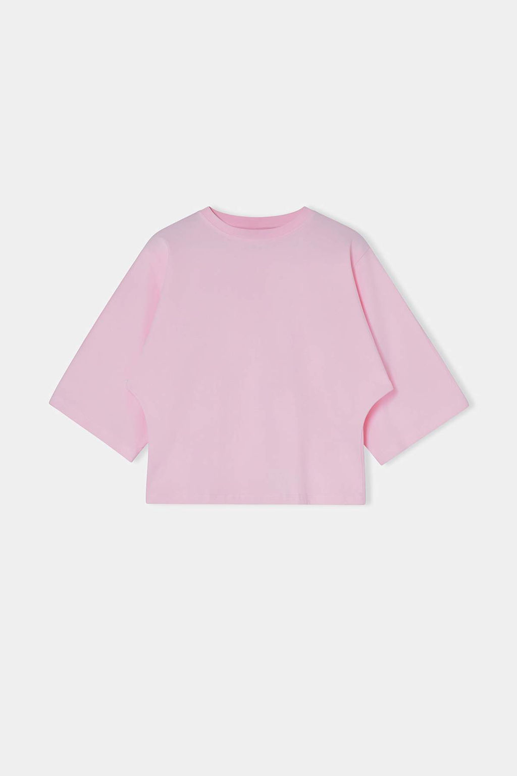 Wardrobe Essentials-Pembe Genis Kal?p Yarasa Kol %100 Pamuk Orme T-Shirt TWOSS26TS00047