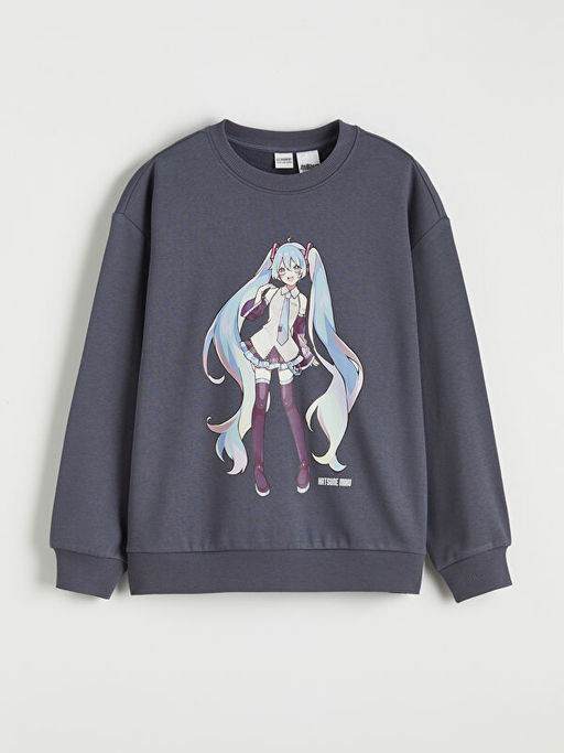 • Hatsune Miku Bask?l? K?z ?ocuk Kal?n Sweatshirt