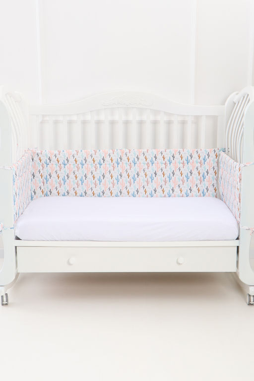 Бортик в детскую кроватку из двух видов тканей компаньонов, красивый и практичный, состоящий из 4-х отдельных частей, 120х35х2 см-2шт и 60х35х2-2шт. Верх бортика изготовлен из высококачественной бязи плотностью 125г/м2, 100% хлопок, наполнитель гипоаллергенный файбер хард. Завязки сшиты из бязи, крепкие и практичные. Все части бортика прошиты поэтому не сбиваются и сохраняют форму и первоначальный цвет при стирке. Спокойные расцветки не раздражают психику малыша, а сам бортик защищает кроху от травм и создает уют во время сна. Изделие прекрасно подойдет и в качестве подарка.