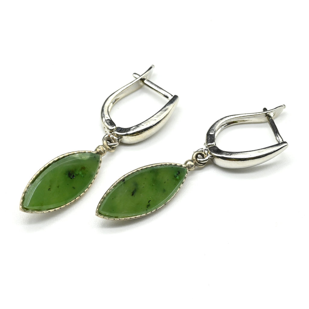 • Серьги нефрит "Рис" 9*22мм Радуга камня