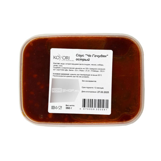 Соус острый Чо Кочудян Koyori это традиционный корейский остро-сладкий соус, приготовленный на основе острой пасты Кочудян и имеющий более жидкую консистенцию дип-соуса. Его используют и для обмакивания продуктов во время трапезы (например, мяса, рыбы, овощей, блинчиков, блюд хве и т.п.), и как приправу при приготовлении супов, тушеных блюд, токпокки, лапши, риса, жареного мяса и рыбы. Многие используют соус Чо Кочудян вместо кетчупа, а еще он станет замечательным маринадом для мяса. Соус придает блюду ощутимую остроту, азиатскую пикантность и особые, чуть сладковатые нотки.