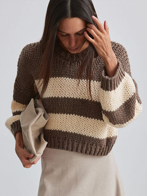 ?izgili Crop Y?n Kar???ml? Kad?n Triko Kazak