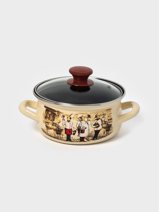 Объём, л: 1.5. Рисунок: Да. Крышка: Да. Капсульное дно: Нет. Бесплатная доставка: Да. Примечание: На дне эмалированных изделий допускаются «точки» - следы от иголок, на которые изделие ставится и обжигается в печи. Точки на дне не влияют на качество посуды и срок её эксплуатации и соответствуют ГОСТ 24788-2018.