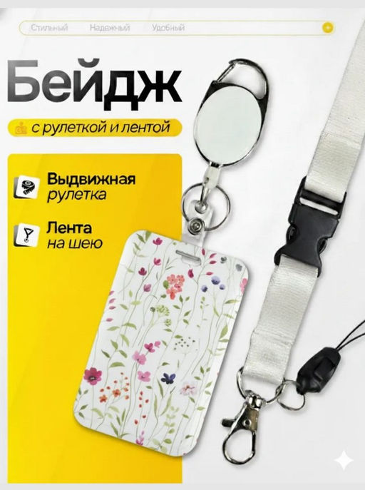 Бейдж для пропуска с рулеткой и лентой на шею, изготовленный из прочного пластика, силикона и нейлона, отличается долговечностью и надежностью.