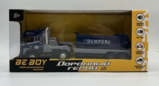 • Модель метал. "Тягач с прицепом" (IT109987) свет, звук, подвиж. элементы., в коробке 30*7,2*9см