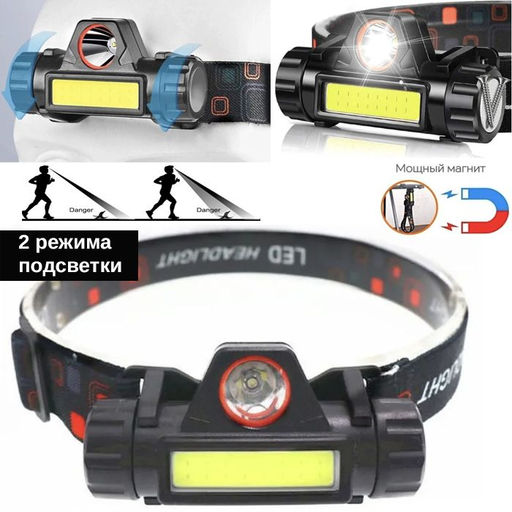 Налобный фонарь с магнитом,2 режима Данная модель совмещает в одном корпусе два независимых друг от друга фонарика. Одна кнопка содержит в себе ряд функций: включение/выключения, переключения режимов, регулировка яркости COB светильника. Отсутствие лишних кнопок и элементов является преимуществом в плане надежности, попадания влаги, пыли, тем самым увеличивая срок службы. В нижней части корпуса расположен фонарик СОВ с 12 диодами. Он имеет очень яркий рассеянный свет и используется при ближнем освещении (ближний свет). В правой части корпуса расположен фонарик с LED светодиодом который имеет сфокусированный луч, применяется при дальнем освещении. Зарядка осуществляется с помощью USB шнура (в комплекте) от любого USB адаптера или разъёма. Фонарик оснащён лёгким и прочным корпусом из пластика и имеет регулируемое крепление на голову. Лента крепления фонаря ультра эластичная, мягкая и приятная на ощупь, регулируется под нужный размер. Фонарь имеет магнитную площадку, что позволяет крепить мелкие детали или фонарь к металлическим частям. Очень удобная функция для ремонта авто. Размер упаковки 9x6,5x5см Вес упаковки 98гр Размер уп. Д/Ш/В (см) 9*6*5 Вес уп.(гр) 90