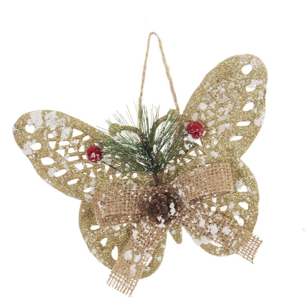 Ажурная Бабочка золотого цвета с искристым напылением. Глиттер придает украшению яркости и блеска. Великолепно гармонирует с любым убранством новогодней ели.