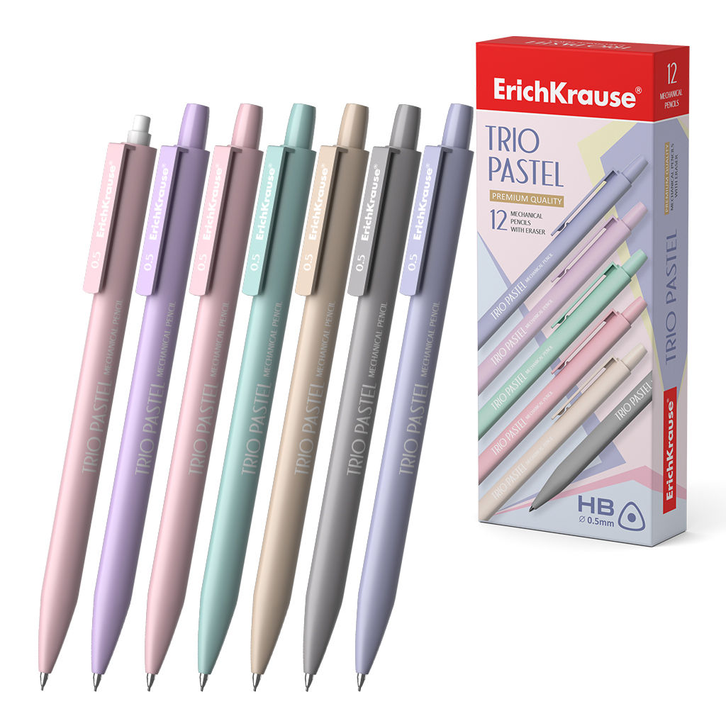 • АКЦИЯ Цена за 12 шт. Карандаш механический ErichKrause Trio Pastel 0.5 мм, HB (в коробке 12 шт.)