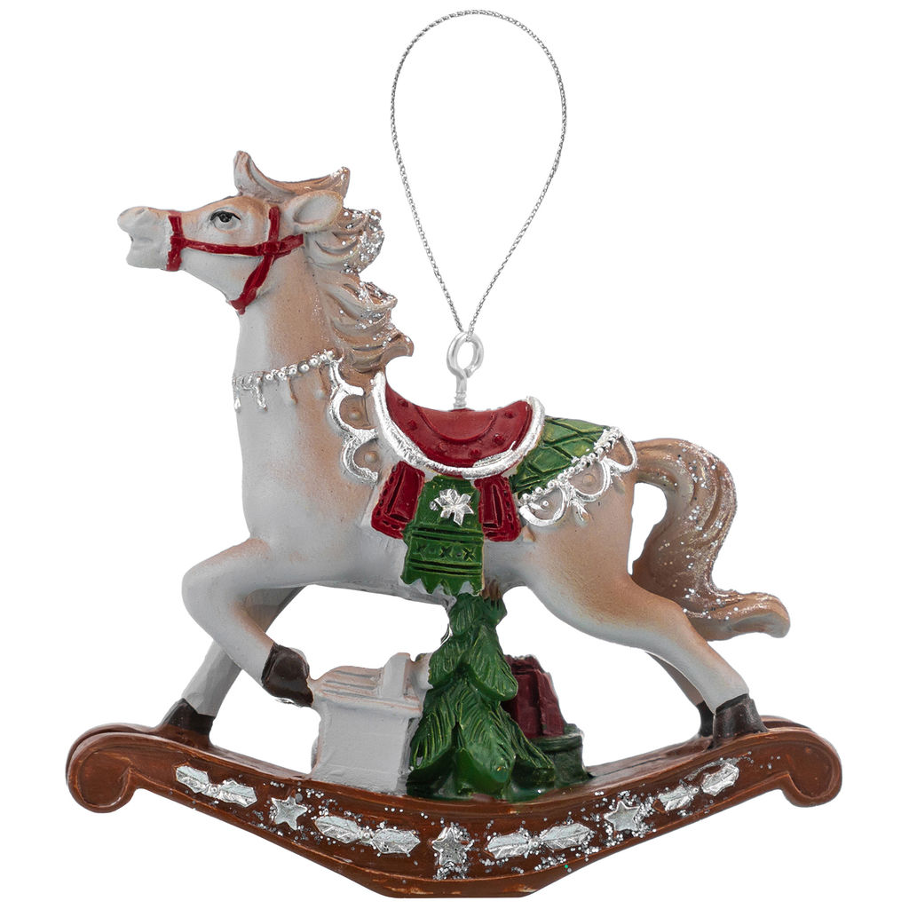 Фигурка декоративная 7,5*2*7,5 см "Лошадка-качалка новогодняя", серая, полирезин