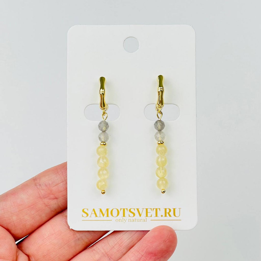 • Серьги длинные из Селенита и Лабрадора