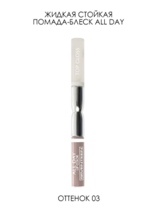 • Seventeen Жидкая стойкая помада-блеск 03 ALL DAY LIP COLOR & TOP GLOSS бежевый