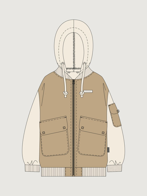 Мы все продумали до мелочей: манжет, горловина, низ оформлены трикотажным подвязом, съемный капюшон из футера, внутренние бретели для возможности снять куртку в помещении.