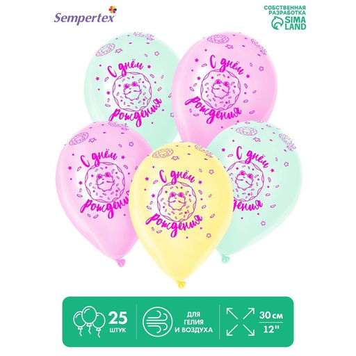 • Воздушные шары латексные 12" «С Днём рождения. Пончик», 25 шт., МИКС