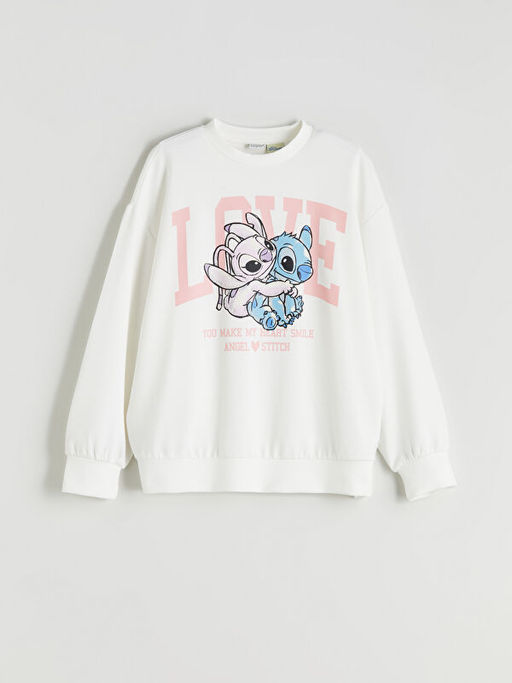 Stitch ve Angel Bask?l? K?z ?ocuk Sweatshirt