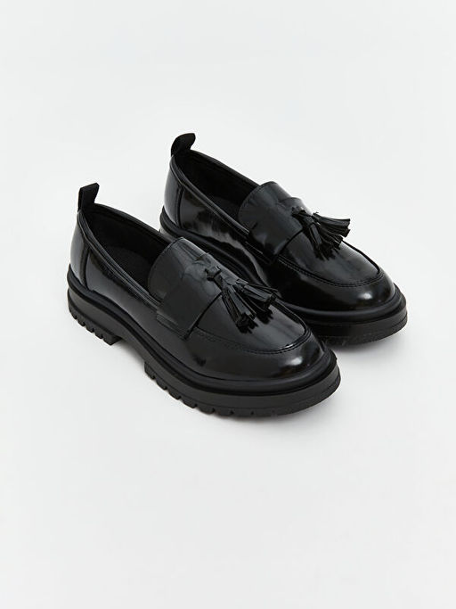 Deri G?r?n?ml? K?z ?ocuk Loafer