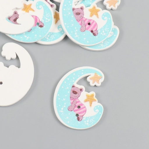 • Цена за 2 шт. Пуговицы дерево для творчества 2 прокола «Мишка на месяце», набор 15 шт., 2.8×3.4 см