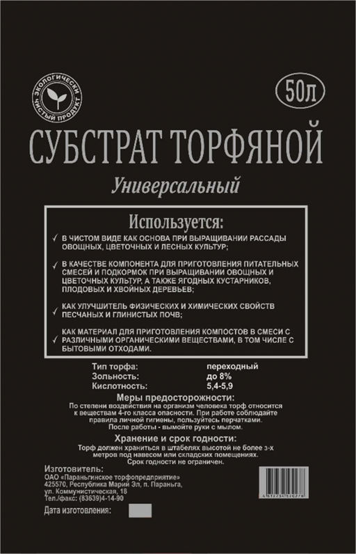 • ПТ Субстрат торфяной верховой 50 л