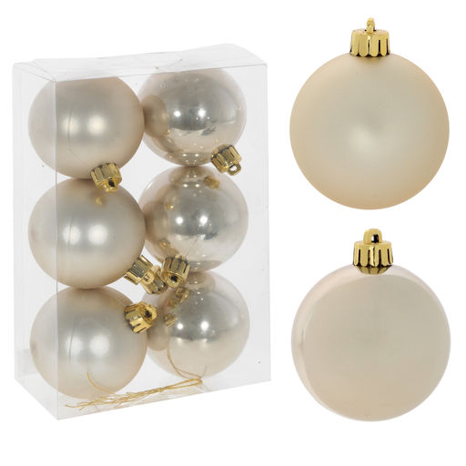 Набор из шести елочных шаров, диаметром 6 см, выполнен в единой цветовой гамме. В составе набора - пластиковые шары разной фактуры - глянцевые, матовые. Прекрасно смотрятся в убранстве новогодней ели. Поставляются в прозрачной пластиковой упаковке.