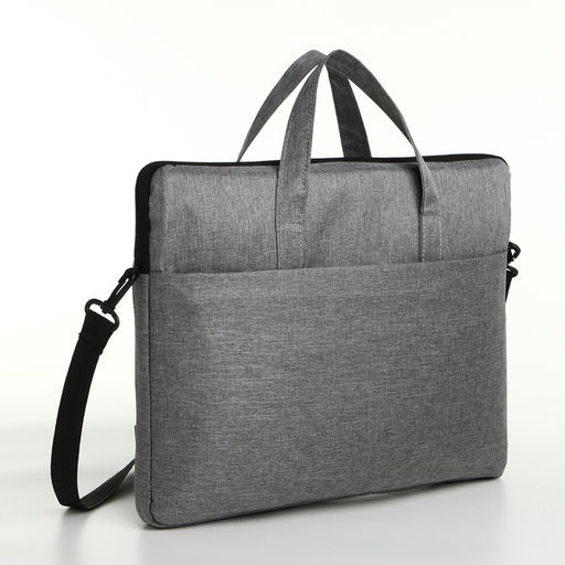 Сумка для ноутбука на молнии, наружный карман, держатель для чемодана, длинный ремень, 37.5×3×27.5 см, серая