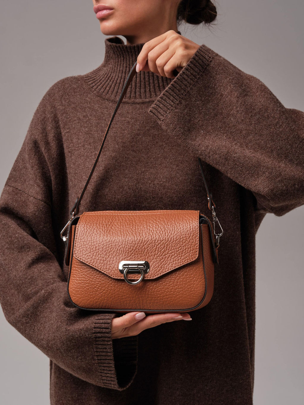 Кожаная женская сумка Azaro 3684 коричневый камень соло - стильная и современная модель, выполненная из плотной, фактурной натуральной кожи с выразительным зернением. Материал выглядит дорого, отлично держит форму и устойчив к носке. Форма сумки лаконичная и аккуратная, что делает её универсальной для любых образов - от повседневного до более элегантного. Коричневый цвет всегда актуален: он подчеркивает фактуру кожи и легко сочетается с любой одеждой. Металлическая фурнитура в холодном серебристом оттенке придает модели современный характер. Стильная застежка одновременно выполняет декоративную и функциональную роль. Женская сумка Azaro 3684 коричневый камень соло продается в комплекте с 2 ремнями - удобным коротким для ношения в руке или на плече, а также длинным, который позволяет носить ее через плечо как кросс-боди. Это делает модель практичной и адаптируемой под разные ситуации. Это стильная, продуманная и универсальная сумка, которая станет стильным акцентом и легко завершит любой образ. -- Характеристики -- Тип товара: Женские сумки Цвет: коричневый камень Материал: Натуральная кожа Бренд: Azaro Тип: Сумка на плечо, Сумка через плечо Страна-изготовитель: Россия Высота, см: 18 Ширина, см: 22 Глубина, см: 9 Материал подкладки: Хлопок Количество внутренних отделений: 1 Количество внешних карманов, шт: 2 Тип застежки: Молния, Зажим Формат А4: не вмещает Высота ручек, см: 23 Длина плечевого ремня, см: 116 Вес товара, г: 570 Ручки: На плечо, На локоть, Плечевой ремень Пол: женская коллекция Группа товара: Сумки Выгружать товары на сайт: Да