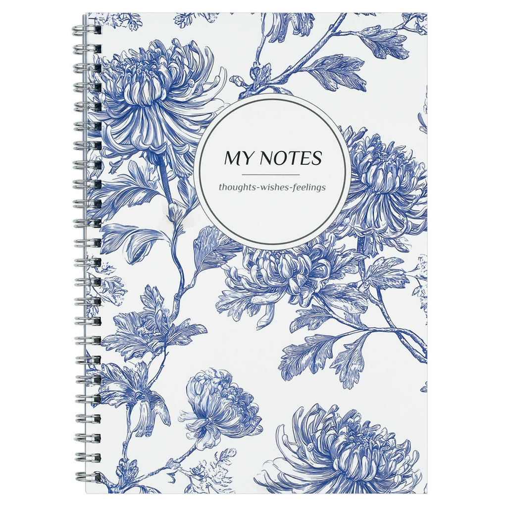 Блокнот, А5, 48 л, арт. 72706 СИНИЕ ХРИЗАНТЕМЫ / Блок - белый офсет 80 г/м?, клетка, гребень по длинной стороне, матовая ламинация/