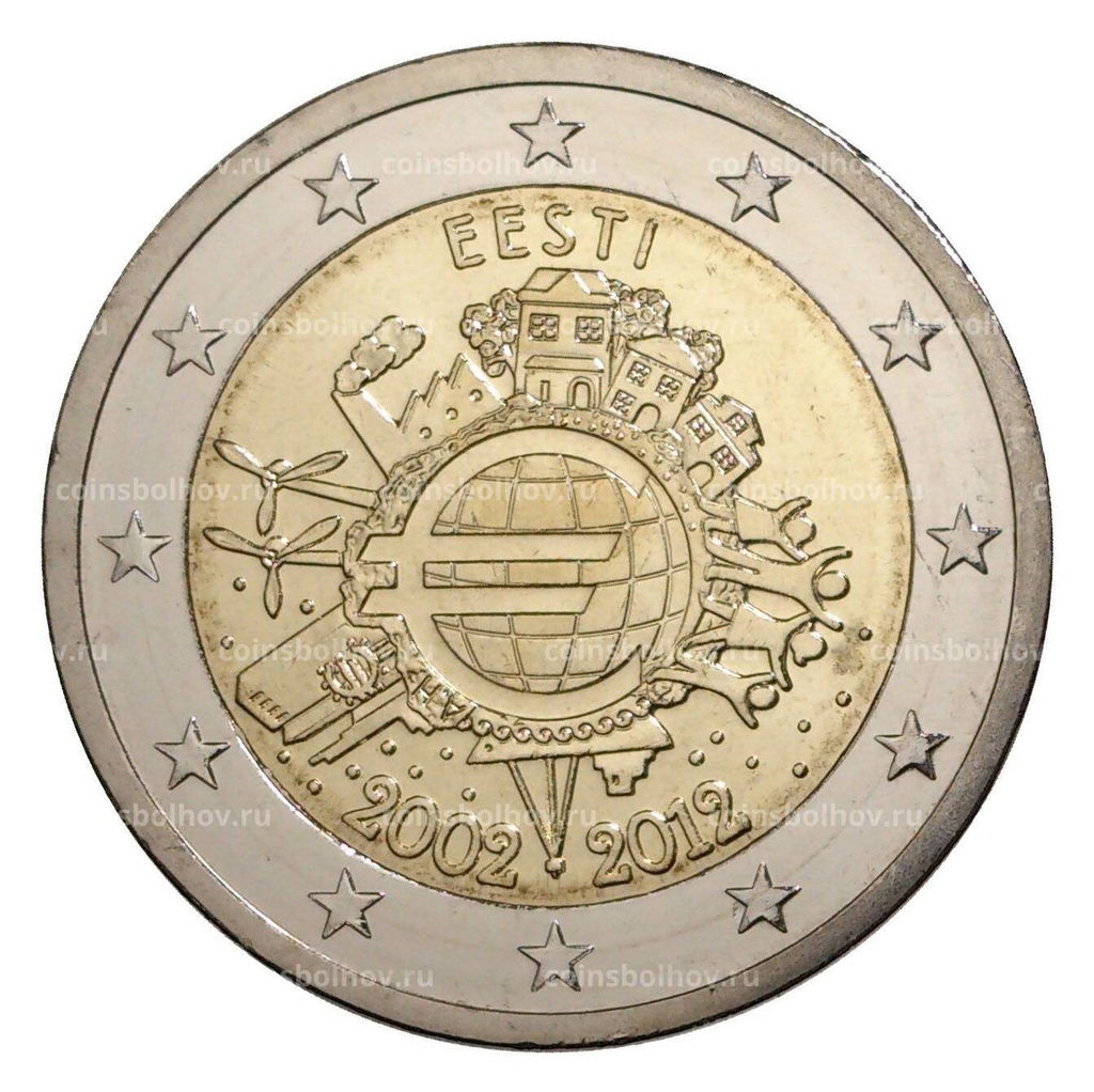 Монета 2 евро 2012 года Эстония 10 лет евро наличными
