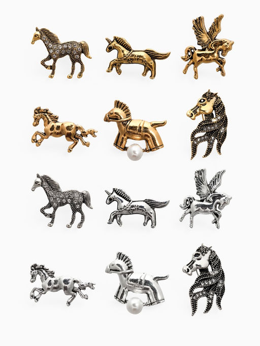 • Цена за 12 шт. Брошь «Лошадь» микс форм, микс цвет