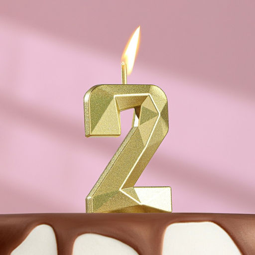 • Цена за 3 шт. Свеча в торт на шпажке «Алмаз», цифра 2, золотая, 5 см