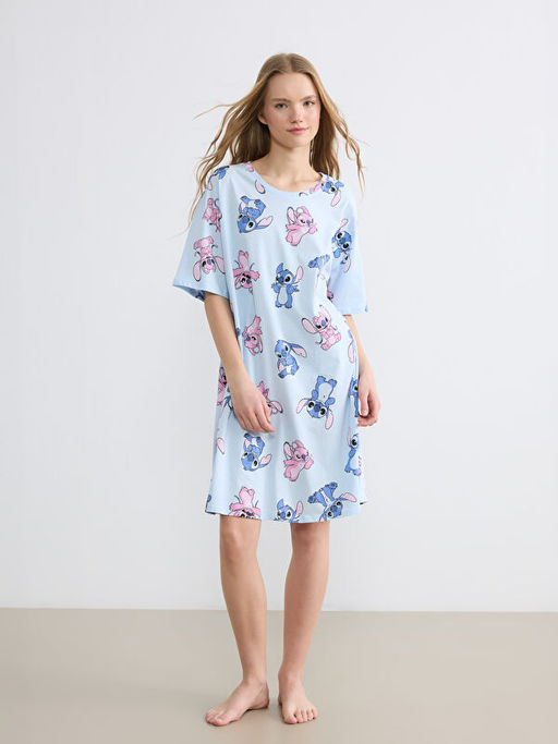 Bisiklet Yaka Stitch ve Angel Bask?l? Kad?n Gecelik