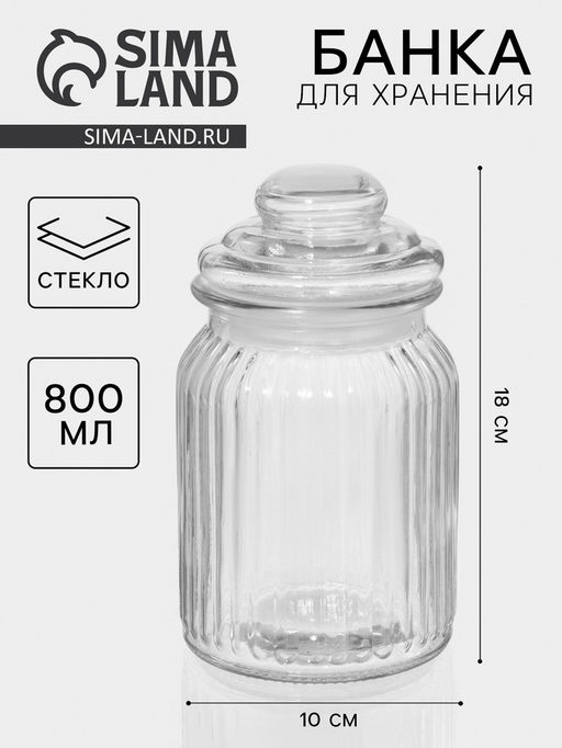 Банка для сыпучих «Лада», 800 мл, 10×18 см, стекло, прозрачная