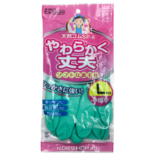 • Перчатки хоз. средней толщины из каучука с хлопковым покрытием зеленые Dunlop H.P. (размер L), Япония Акция