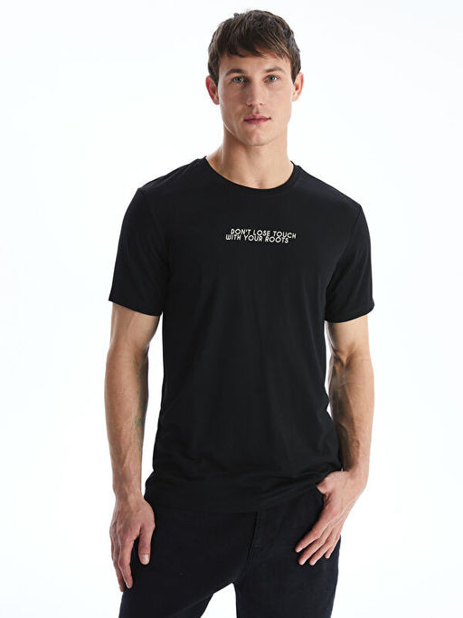 Bisiklet Yaka Bask?l? Erkek Ti??rt