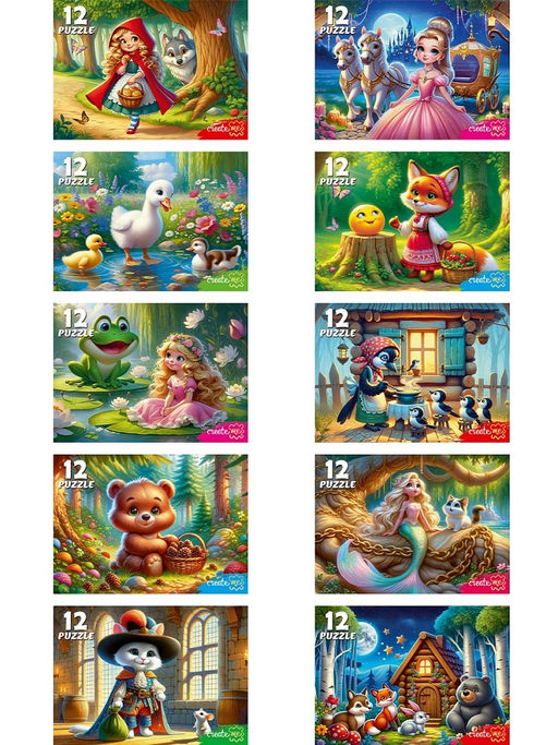 Цена за 2 шт. Puzzle 12 элементов "Добрые истории" в ассорт. (П12-2866) по 10шт. в шоубоксе