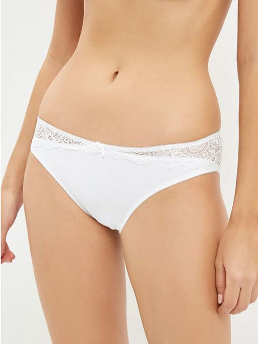 Женские изящные трусы слип с гладной хлопоковой вставкой спереди, боковыми кружевными вставками, переходящими в полностью кружевную заднюю часть.