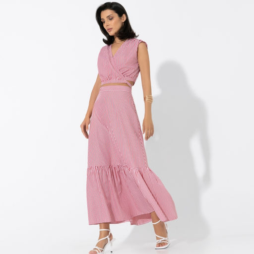 Ткань полоска плательная это не просто материал, это воплощение комфорта и лёгкости. Она дарит ощущение невесомости, позволяя коже дышать даже в самый жаркий день. Удлинённый силуэт, который создаётся за счёт макси-юбки, подчёркивает грациозность и добавляет нотку аристократичности в ваш образ. Этот комплект станет вашим союзником в создании неповторимого стиля, который не останется незамеченным. Заказывая оптом, вы сможете предложить своим клиентам трендовые решения для летнего гардероба.