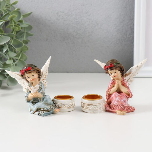 Подсвечник на 1 свечу Ангел в платье с венком, полистоун, d=2.2 см, 7.2?8.7?5.5 см, МИКС