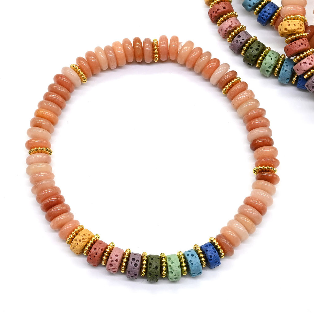 • Браслет из кварца диски 6*2мм со вставками из лавы цв.сердолик, 15см