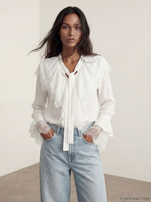 • Ba?lamal? Yaka Dantelli F?rf?rl? Bluz