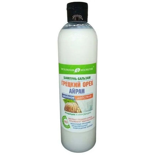 • Эксклюзивкосметик Шампунь-бальзам Грецкий орех и Айран для сухих, ломких, ослабленных волос, 500 гр