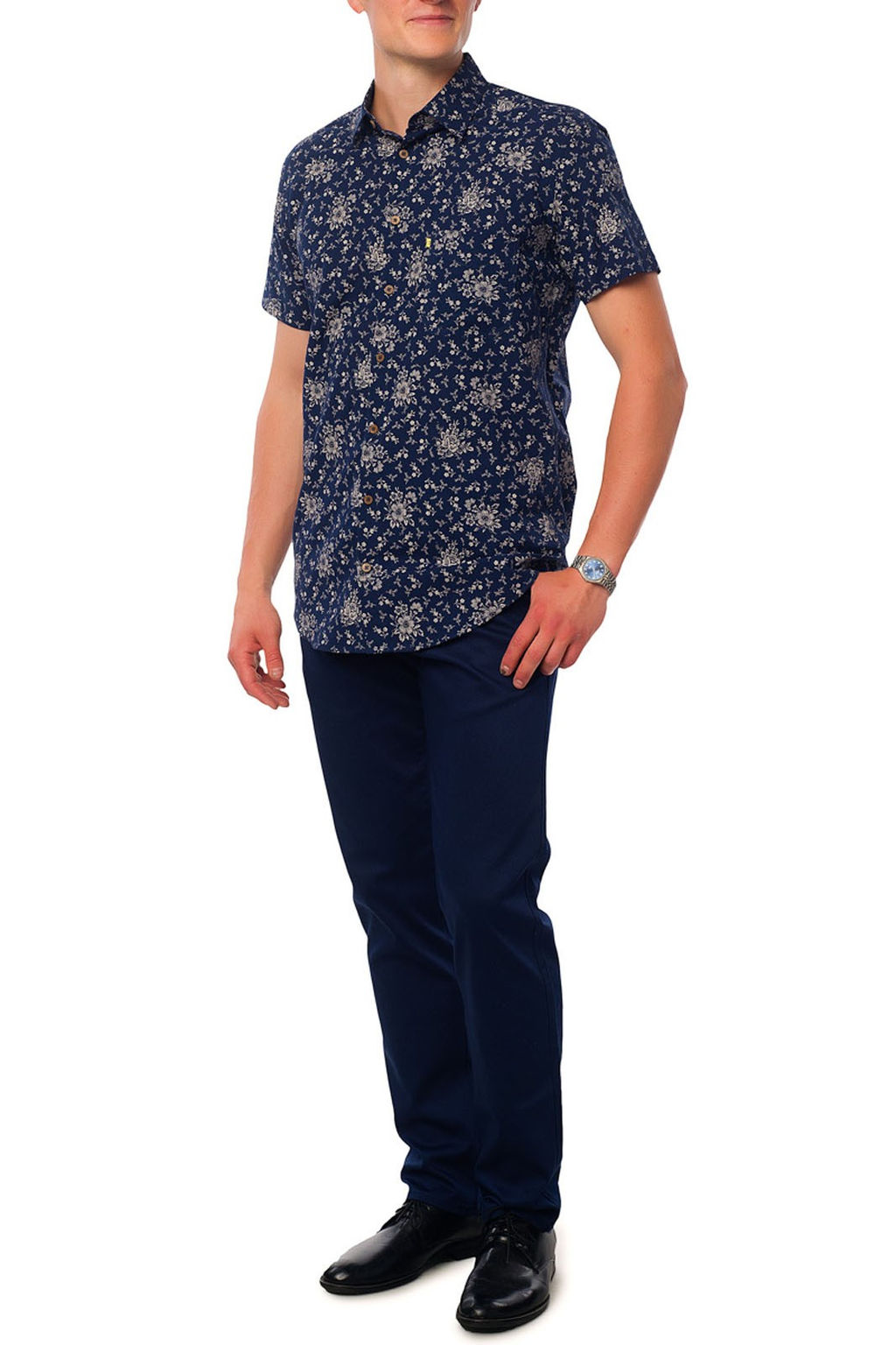 Рубашка темно-синего цвета с цветочным принтом. Силуэт класический. Стиль повседневный. Носить можно с джинсами и с брюками в контраст к тону основной ткани.
