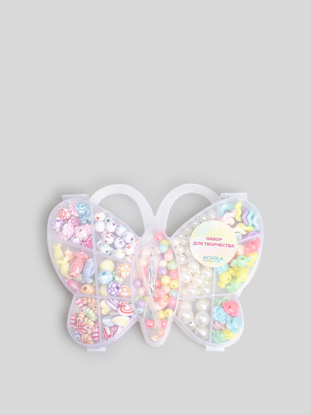 Детский набор для творчества это прекрасный подарок для развития ребенка. Пластиковая коробочка в виде бабочки хранит в себе эластичный шнур и множество самых разных бусин, из которых можно создавать брелоки, бусы, кольца и браслеты. Разноцветные бусины и искусственные жемчужинки разных размеров позволят ребенку собирать украшения своими руками, развивая творческие навыки и фантазию. Работа с бусинами улучшает мелкую моторику и усидчивость, что особенно важно для малышей. Удобный бокс для хранения с разбивкой на секторы приучит ребенка к порядку и аккуратности. Разнообразие материалов и безграничная фантазия поможет девочке с пользой проводить время и радовать близких самодельными украшениями. 20206260074