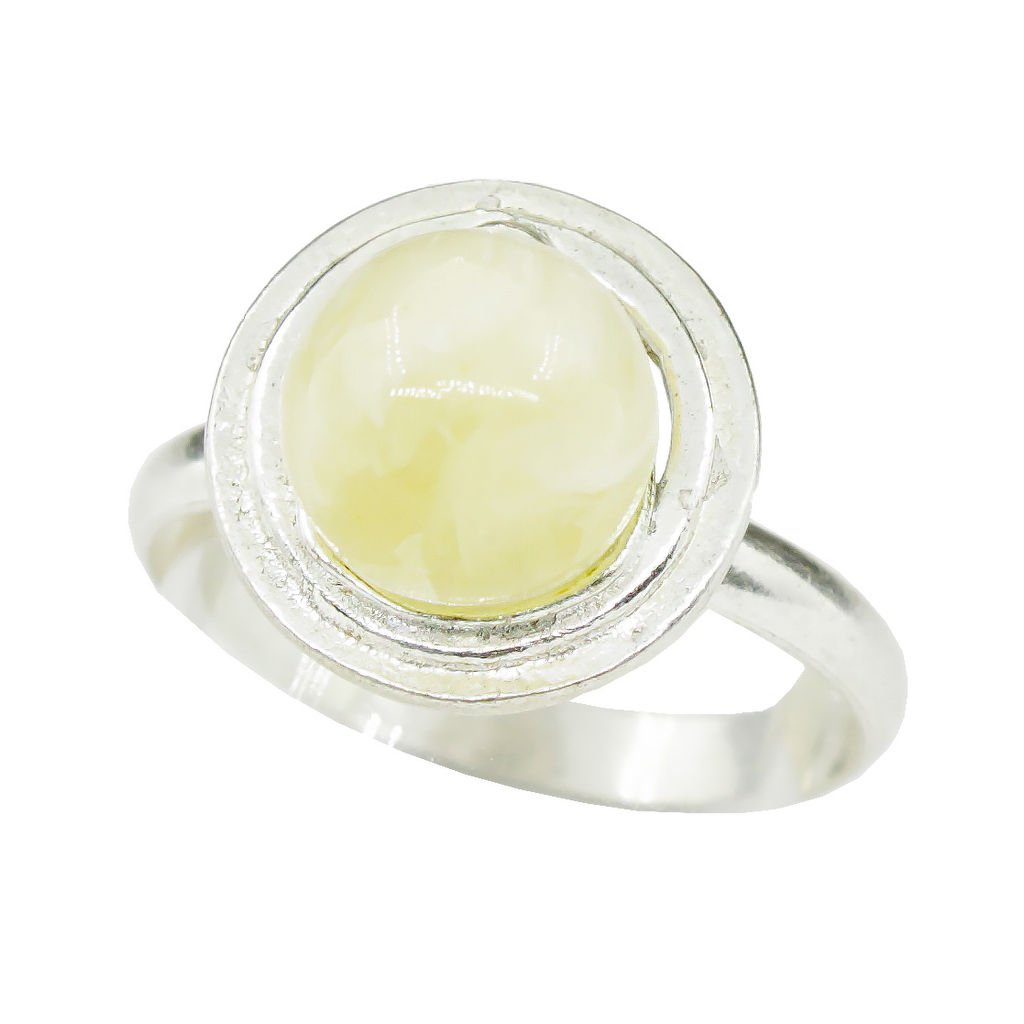 Изящное кольцо с молочным янтарем (имитация) дополнит Ваш повседневный образ. Размер вставки 9мм. Размеры кольца 18.