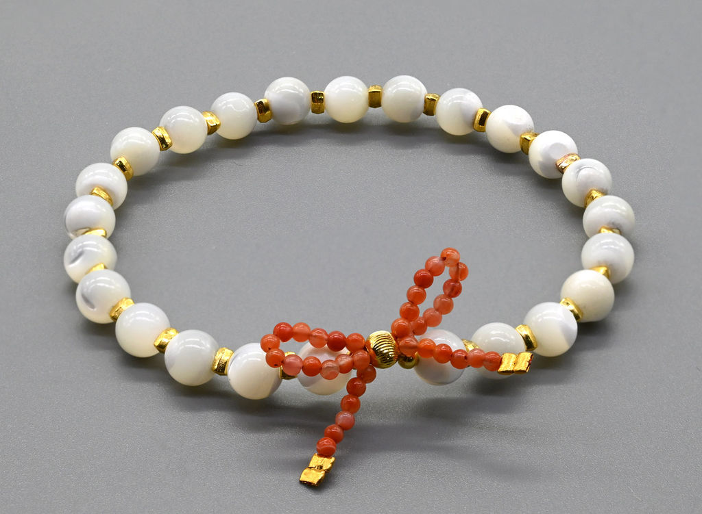 Браслет с шариками из перламутра бантик из сердолика, 17см