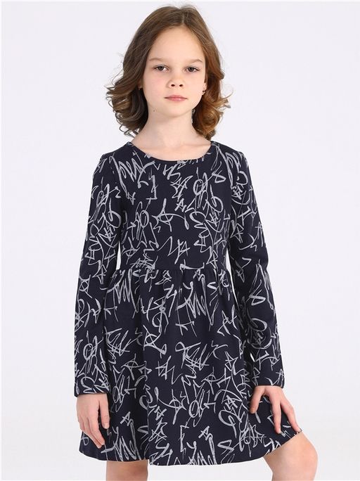 платье,хлопок 92% + лайкра 8%,кулир с лайкрой / хлопок 92% + лайкра 8%,- / серебряные граффити на темно-синем / - / - / - / -,Платье для девочки выполнено из тонкого хлопкового полотна с лайкрой. Изделие с длинными рукавами и с присборенной по талии юбочкой, украшено глиттером. Отличный наряд для маленьких принцесс! Уход: только деликатная стирка при температуре 40 градусов, без предварительного замачивания.