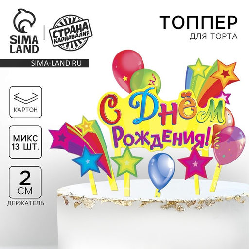 • Цена за 2 шт. Топперы для торта «С днём рождения!»