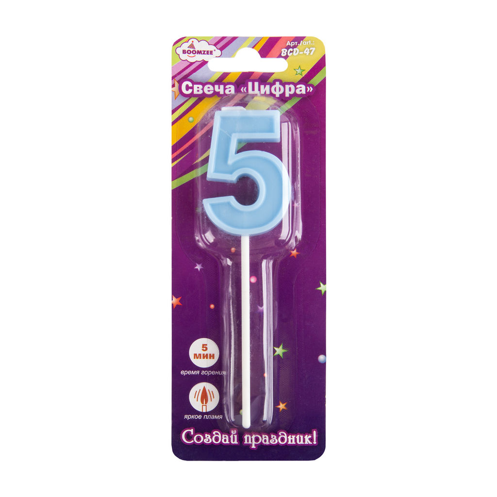 • "BOOMZEE" Свеча для торта "Цифра" BCD-47 7.5 г 12 х 1 шт. 5_голубой