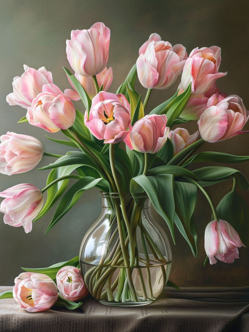 • Вышивка крестиком 40х50см, Розовые тюльпаны
