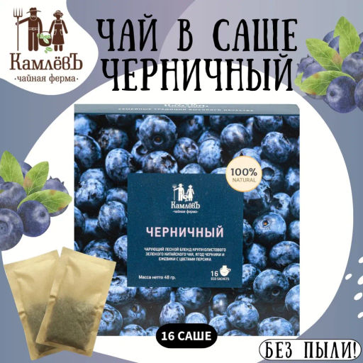 • Камлёвъ Фруктовый зеленый листовой чай "Черничный", 48 г (16 саше)